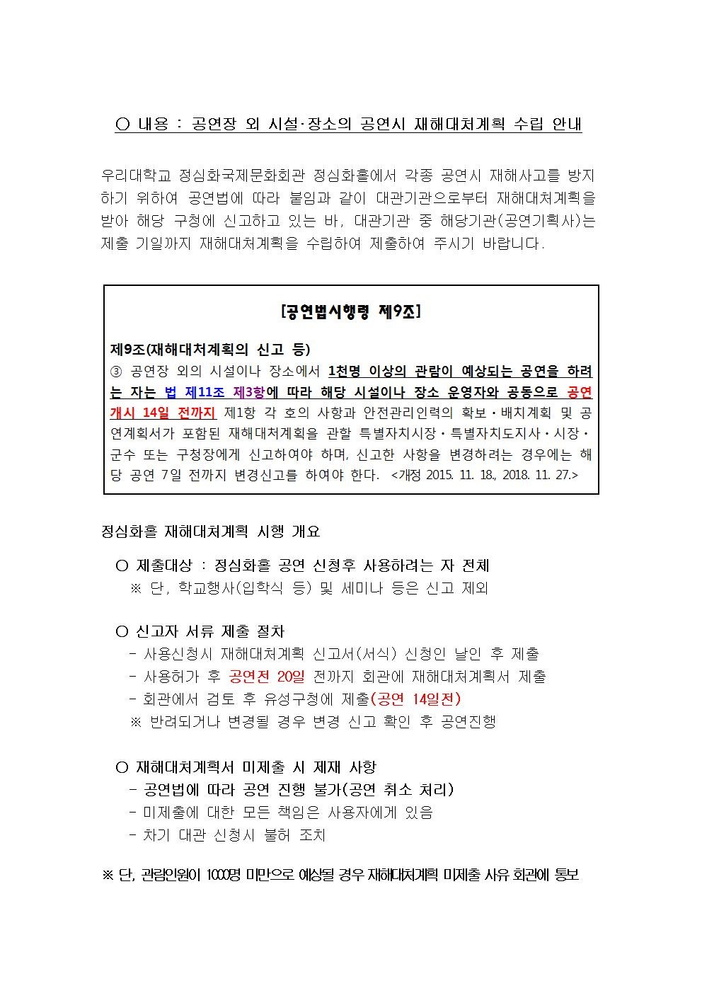 재해대처 계획 수립 안내